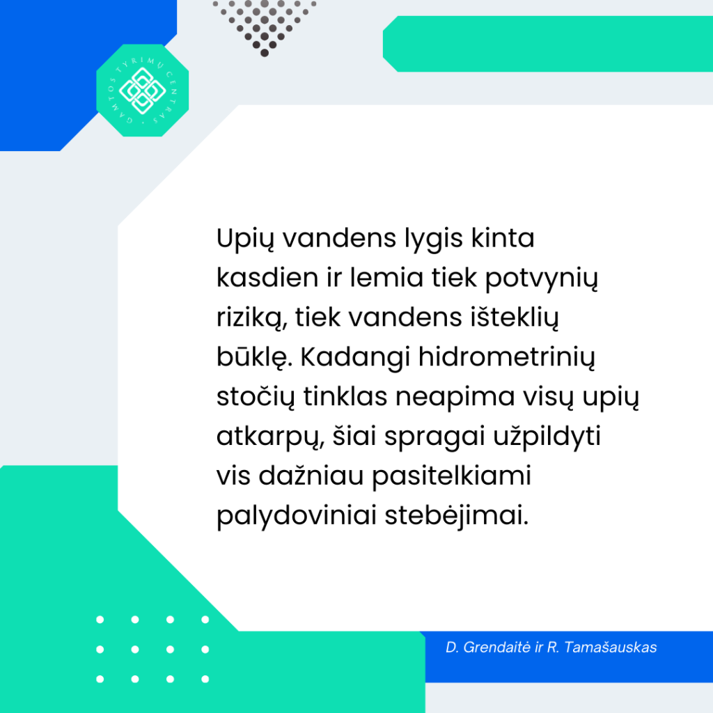 Upių vandens lygis kinta kasdien ir lemia tiek potvynių riziką, tiek vandens išteklių būklę. Kadangi hidrometrinių stočių tinklas neapima visų upių atkarpų, šiai spragai užpildyti vis dažniau pasitelkiami palydoviniai stebėjimai.