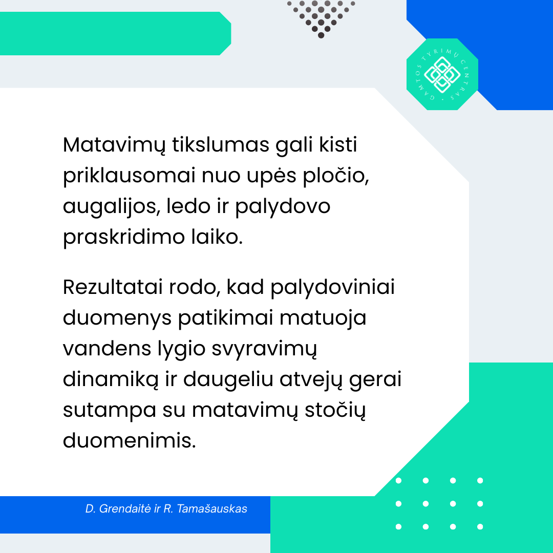 Rezultatai rodo, kad palydoviniai duomenys patikimai matuoja vandens lygio svyravimų dinamiką ir daugeliu atvejų gerai sutampa su matavimų stočių duomenimis.