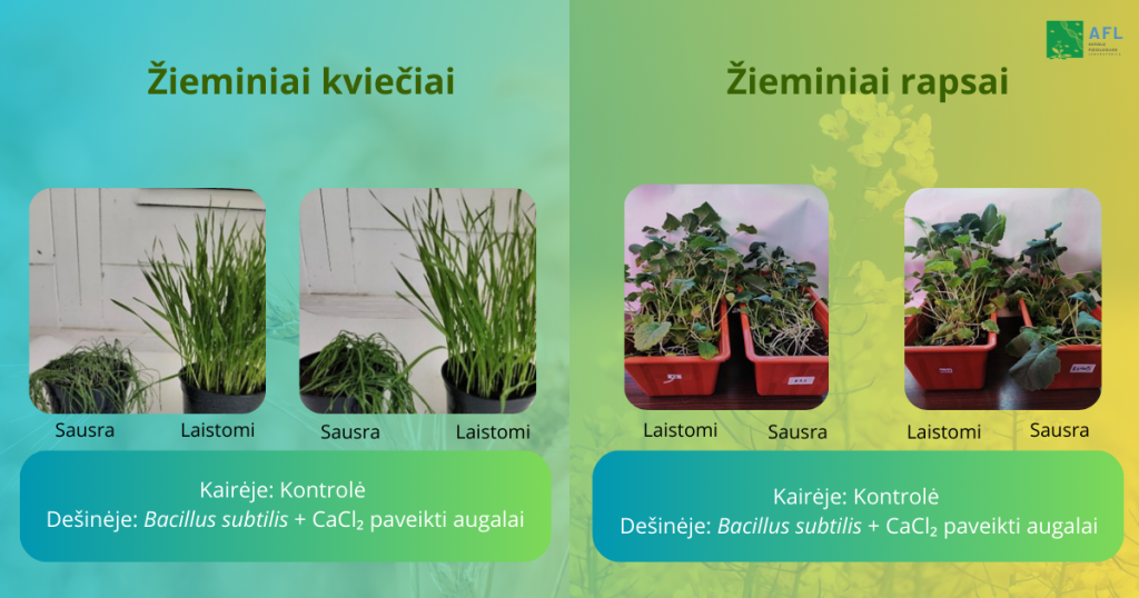Gauti rezultatai rodo, kad mūsų tiriami mikroorganizmai kartu su kalcio druskomis gali būti itin perspektyvūs sausros sąlygomis, kuriant aplinkai draugiškas technologijas. Tolimesni tyrimai padės tiksliau įvertinti poveikį derliui ir produkto kokybei, kad ūkininkai turėtų patikimus sprendimus tvariai žemdirbystei.