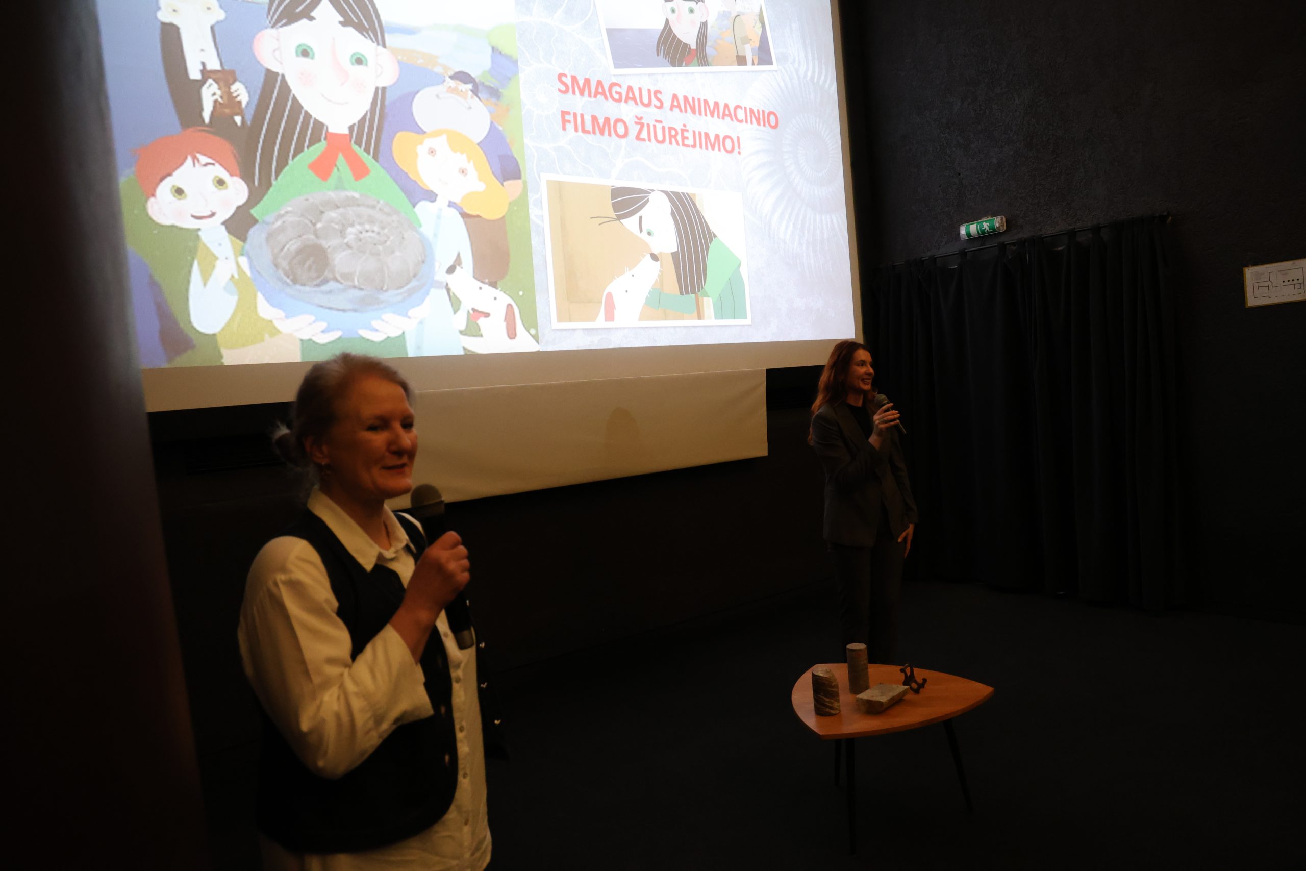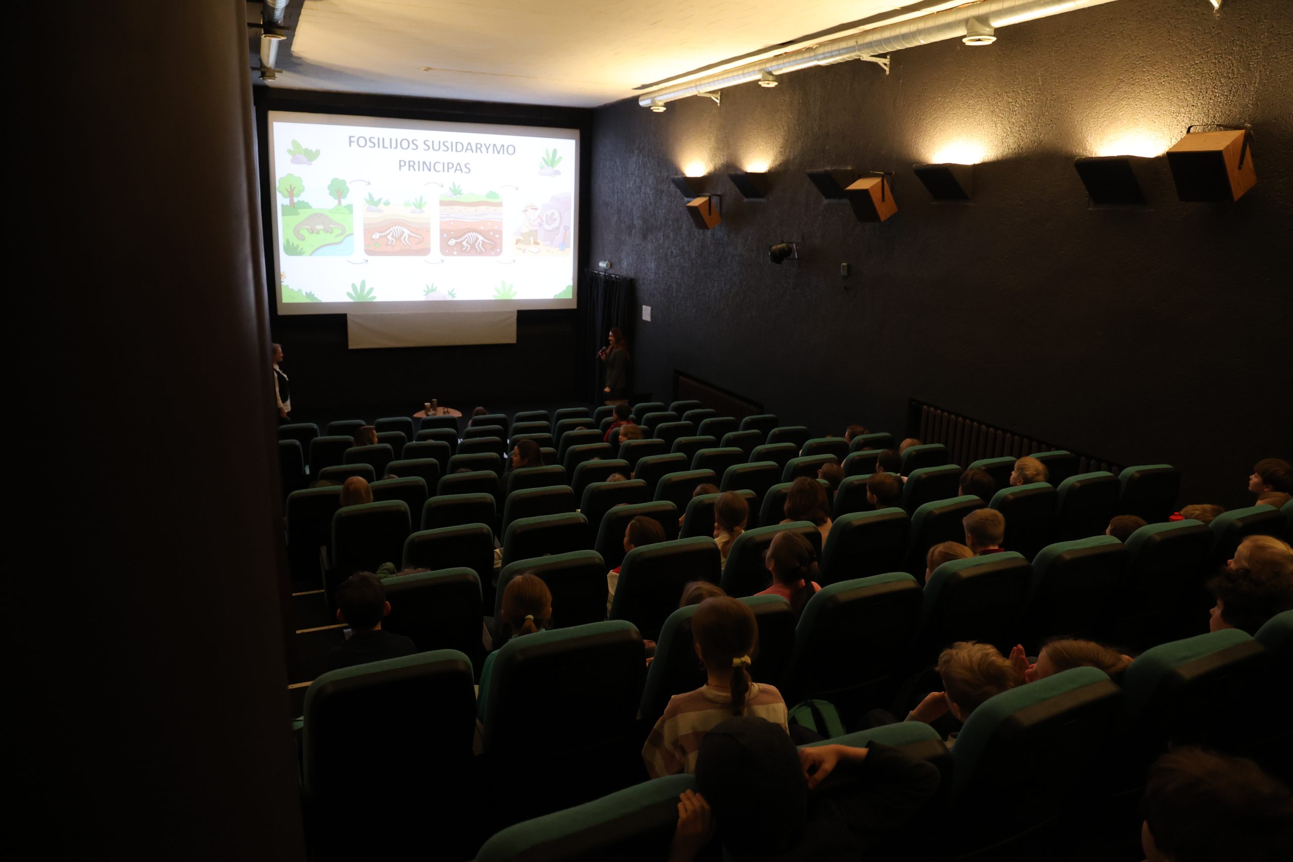 Per specialų festivalio „Kino pavasaris“ seansą vaikams, kuriame buvo rodomas animacinis filmas „Merė Aning“, Gamtos tyrimų centro tyrėjos: paleontologė dr. Darja Dankina ir vyriausioji specialistė Indrė Satkūnienė pakvietė mažuosius žiūrovus į pažintį su tikruoju fosilijų pasauliu.