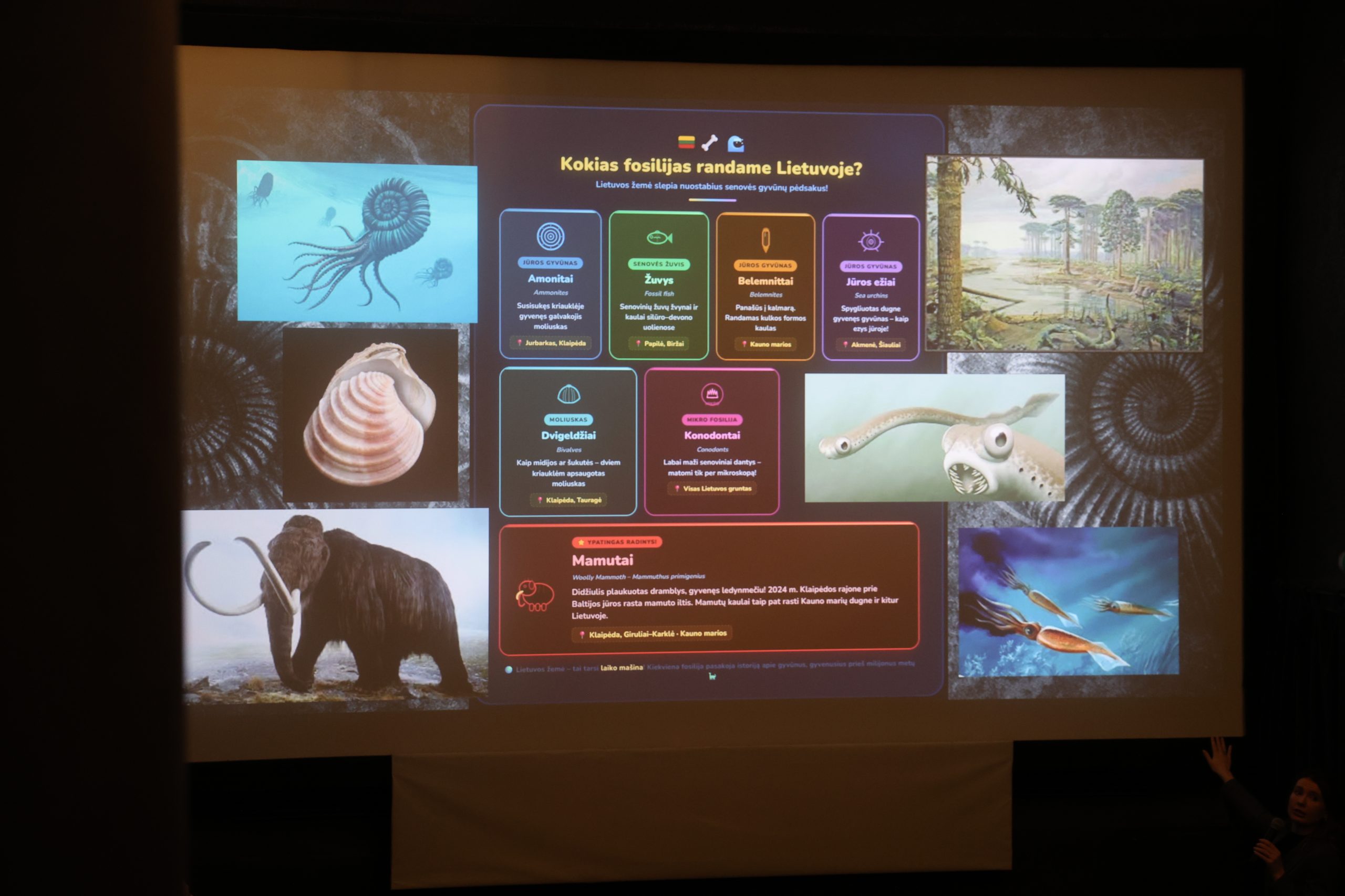 - Parodė, kokios fosilijos randamos Lietuvoje ir kuo jos ypatingos.