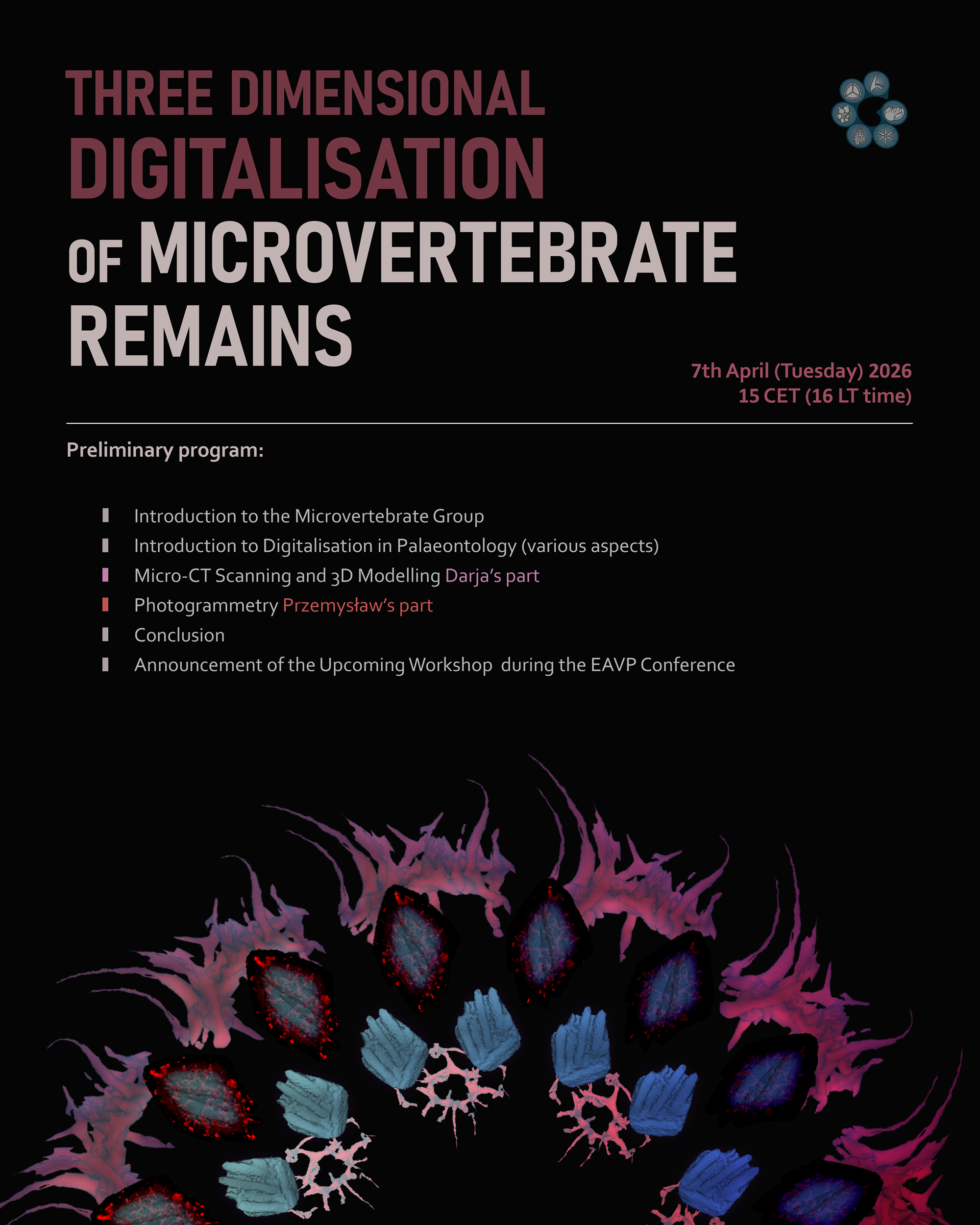 Balandžio 7 d. įvyko pirmasis Mikropaleontologijos asociacijos (angl. The Micropalaeontological Society, TMS) naujai atkurtos Mikrostuburinių mokslo grupės renginys, vykęs nuotoliniu būdu. Jį vedė šios grupės atstovė, Gamtos tyrimų centro paleontologė dr. Darja Dankina, kartu su kolega iš Lenkijos – dr. Przemysław‘u Świś‘u. Mokymų tema – mikrofosilijų skaitmenizacija ir 3D fosilijų modeliavimas įvairiais metodais. Renginys sulaukė daug teigiamų atsiliepimų. Jame dalyvavo daug asociacijos narių iš keturių skirtingų žemynų: Pietų ir Šiaurės Amerikos, Azijos ir Europos.