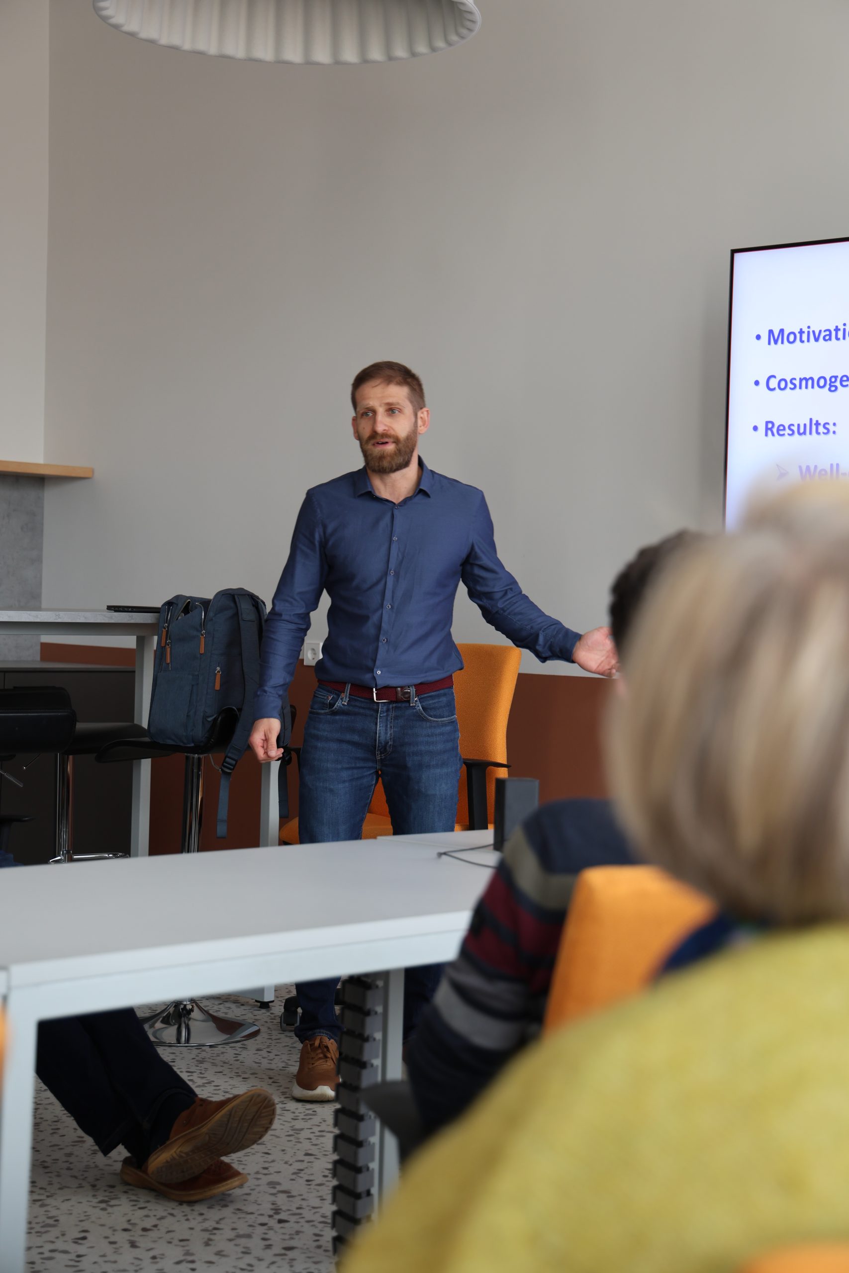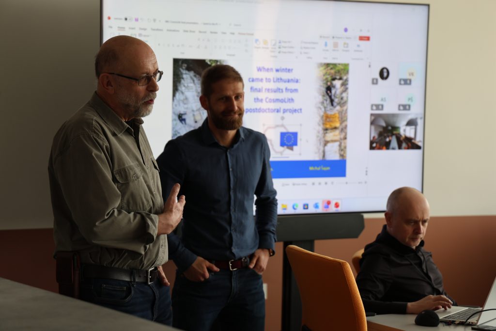 Paskaitą skaitė podoktorantūros stažuotojas Dr. Michal Šujan, pristatęs pranešimą „When winter came to Lithuania: final results from the “CosmoLith” postdoctoral project“.