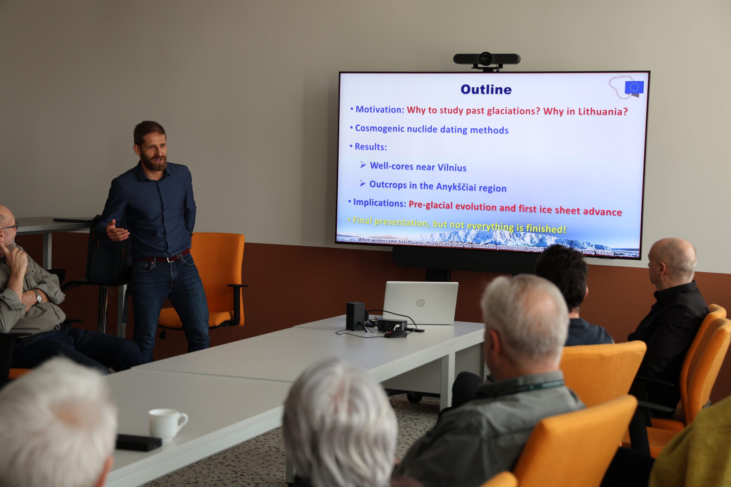 Gamtos tyrimų centre įvyko baigiamoji podoktorantūros projekto „Kontinentinio ledo skydo atsiradimo Lietuvoje datavimas kosmogeninių nuklidų metodais“ („CosmoLith“)“ paskaita.