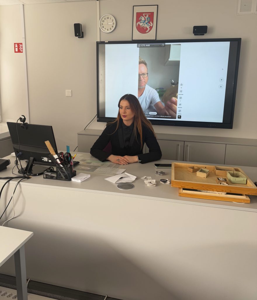 Taip pat dr. Darja Dankina kartu su GTC mokslo darbuotoja dr. Neringa Gastevičiene vedė praktinį užsiėmimą, kuriame mokiniai susipažino su fosilijų atkūrimu naudojant 3D modeliavimo technologijas.