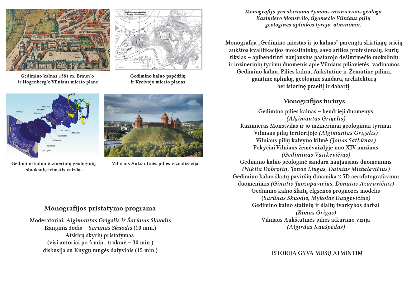 Knyga skiriama žymaus inžinieriaus geologo Kazimiero Monstvilo, ilgamečio Vilniaus pilių geologinės aplinkos tyrėjo, atminimui.