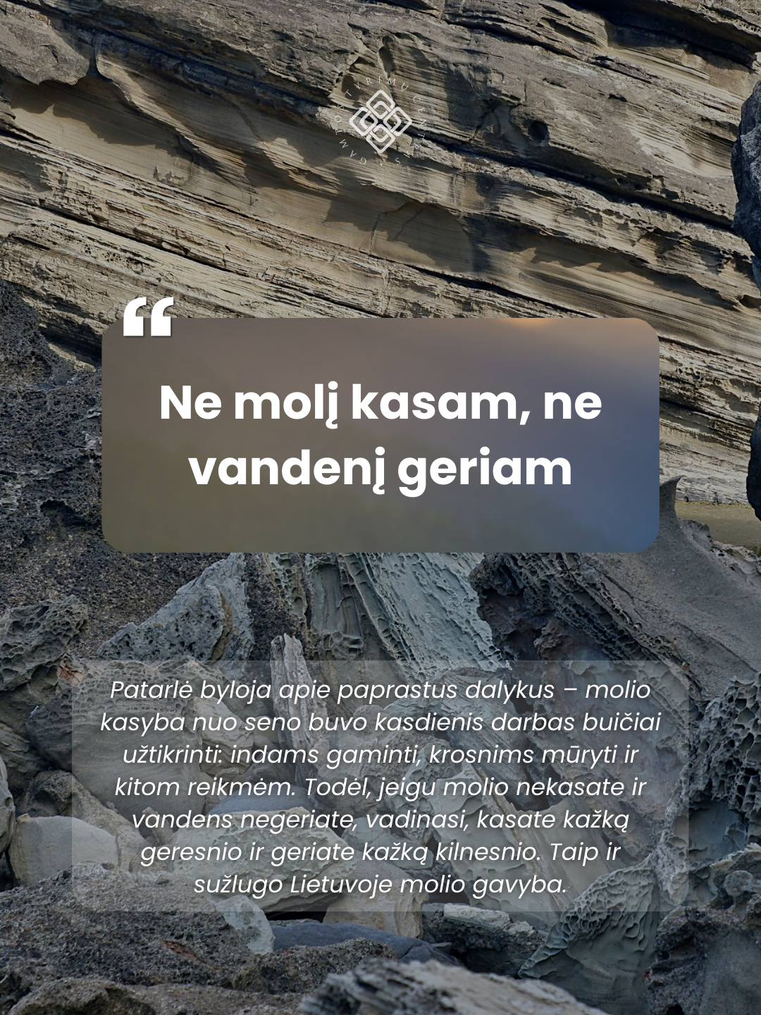 Patarlės – tai vaizdingi, tradicija perduodami posakiai, dažnai paremti itin aiškiais gamtos reiškinių vaizdiniais: vandeniu, akmeniu, žeme. Šie motyvai ne tik sustiprina mintį, bet ir atveria pažįstamą geologinės aplinkos paveikslą.