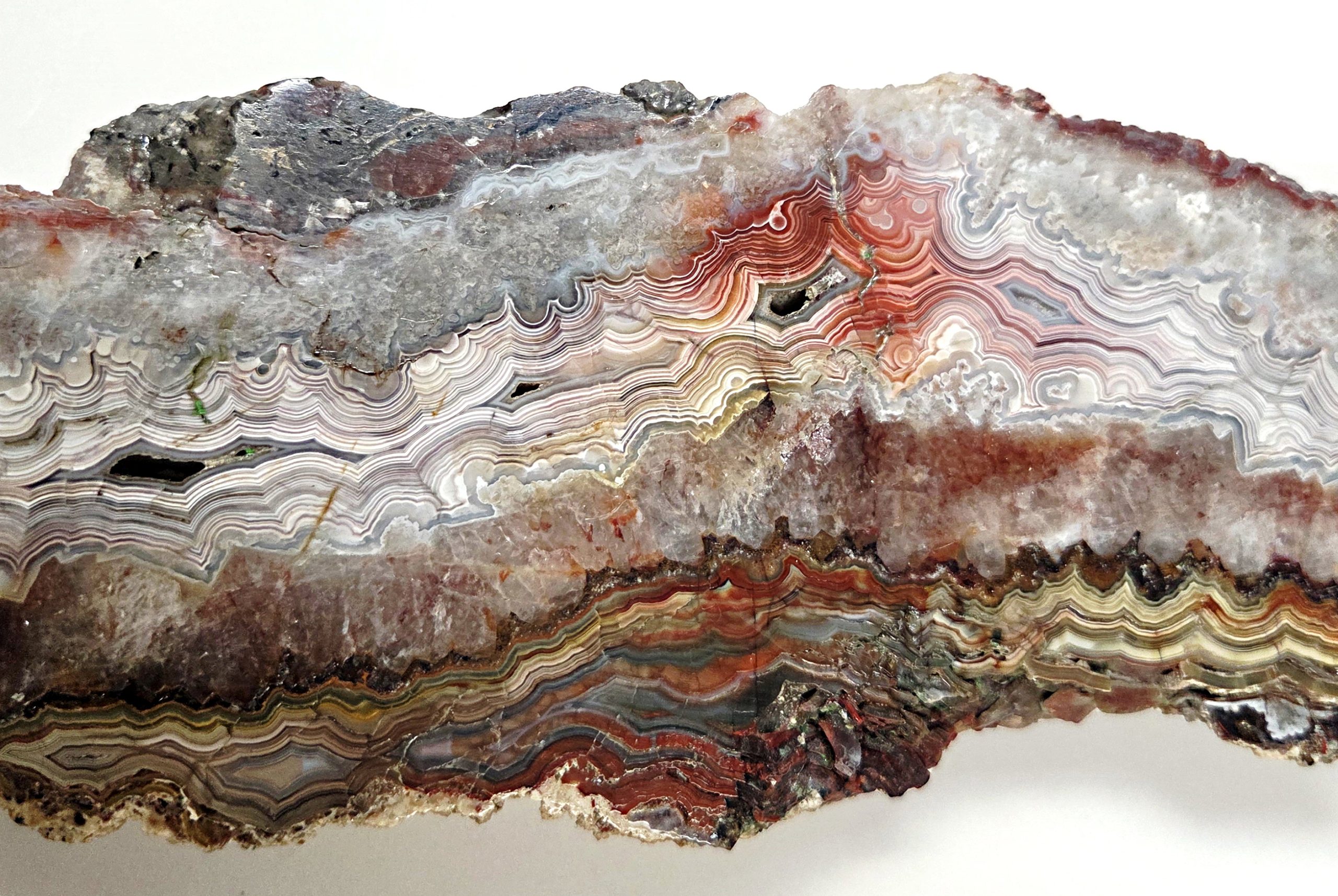 Jau sukaupta didžiulė ir vienintelė Lietuvoje tokio dydžio agatų kolekcija pasipildė dar 12-ka naujų pavyzdžių. Tai agatai iš Afrikos žemyno: Malavio ir Maroko radaviečių (Asnio (Asni), Kerušeno (Kerrouchen), Sidi Rahalio (Sidi Rahal), Zaero Zajano (Zaer Zaiane), Ahouli, Agvimo (Agouim)), kurios pasaulyje puikiai žinomos ir vertinamos kolekcininkų dėl unikalių mineralų spalvų ir raštų. Taip pat gautas vienas didelis eksponatas iš Meksikos, Čihuahua valstijos. Šioje vietovėje randami agatai laikomi vienais spalvingiausių ir vertingiausių pasaulyje. Jų skirtingų spalvų sluoksniai susisuka ir susipina, sukurdami sudėtingus, ažūrinius nėrinius primenančius piešinius, todėl jie vadinami nėriniuotaisiais agatais.