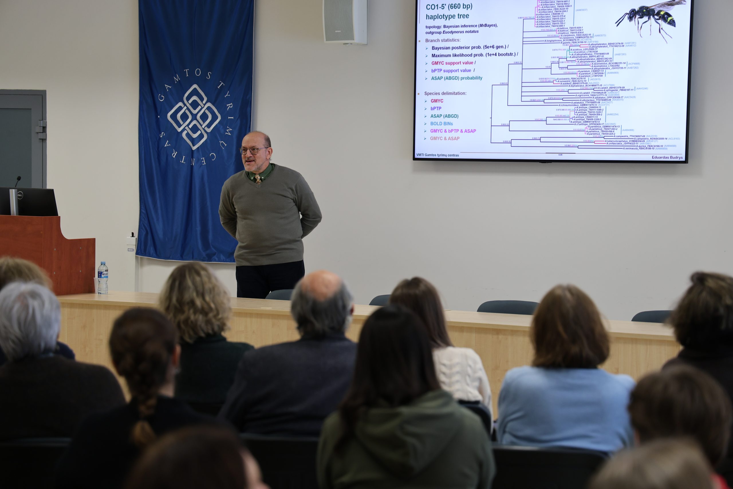 Šiandien Gamtos tyrimų centre vyko dar vienas populiaraus ciklo „Pietūs kitaip“ susitikimas. Jo metu Doc. daktaras Eduardas Budrys pakvietė visus pasinerti į mįslingą vapsvų pasaulį su pranešimu apie tai, kodėl vapsvos kartais tampa sunkiai atskiriamomis antrininkėmis. Auditorija turėjo progą išgirsti apie parazitinių vapsvų strategijas bei kvapų kalbą.