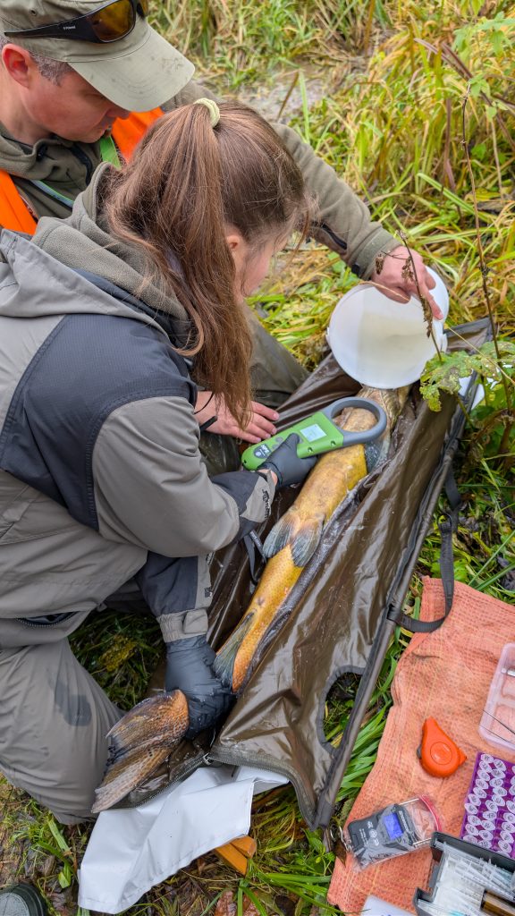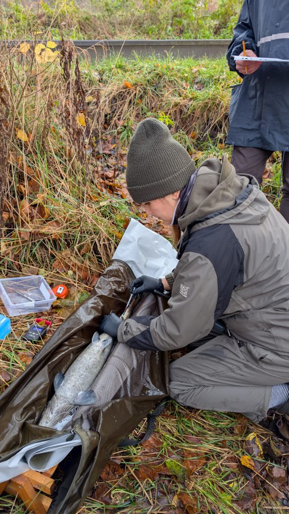 Tyrimų metu upėse pagautos žuvys pažymimos RFID žymekliais, matuojamas jų ilgis ir svoris, paimami kraujo mėginiai, siekiant įvertinti žuvų sveikatos būklę ir aplinkos taršos poveikį.