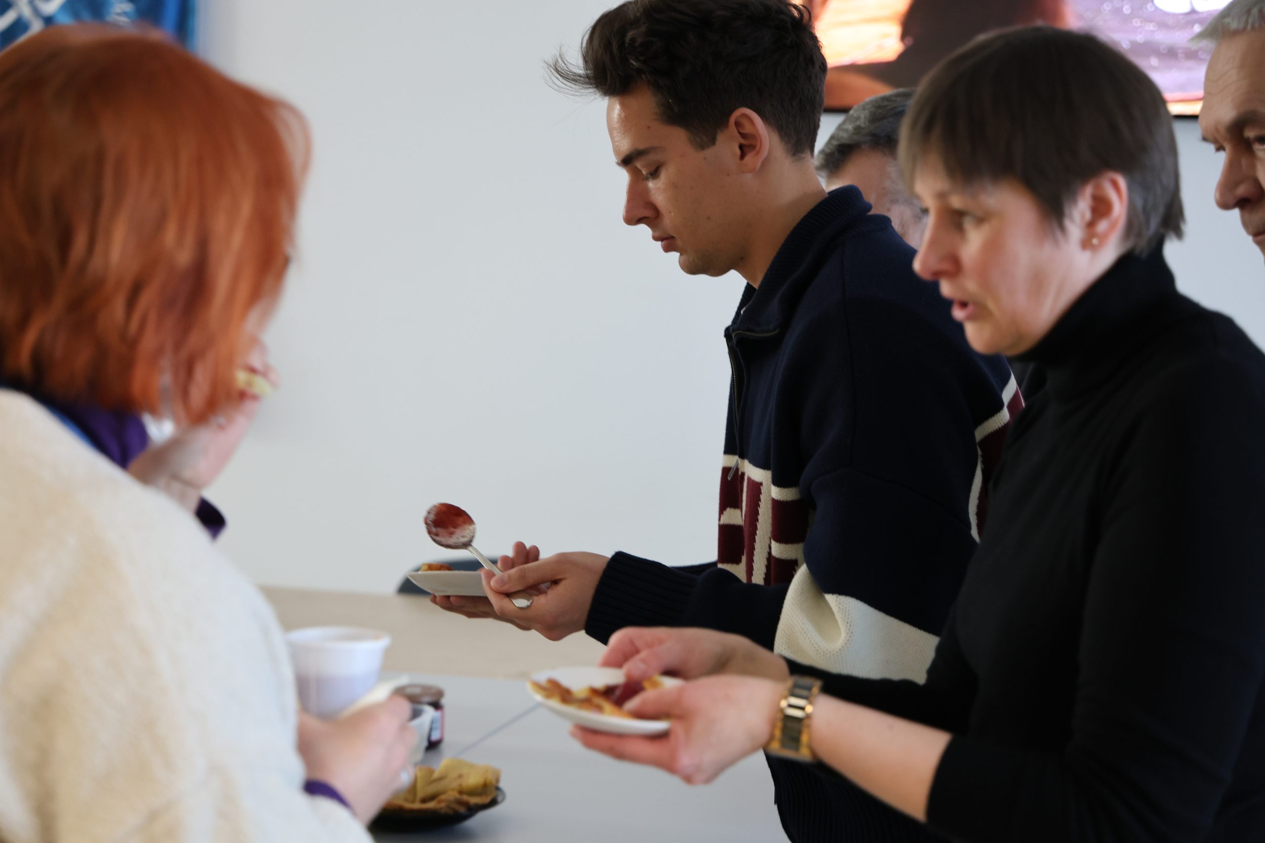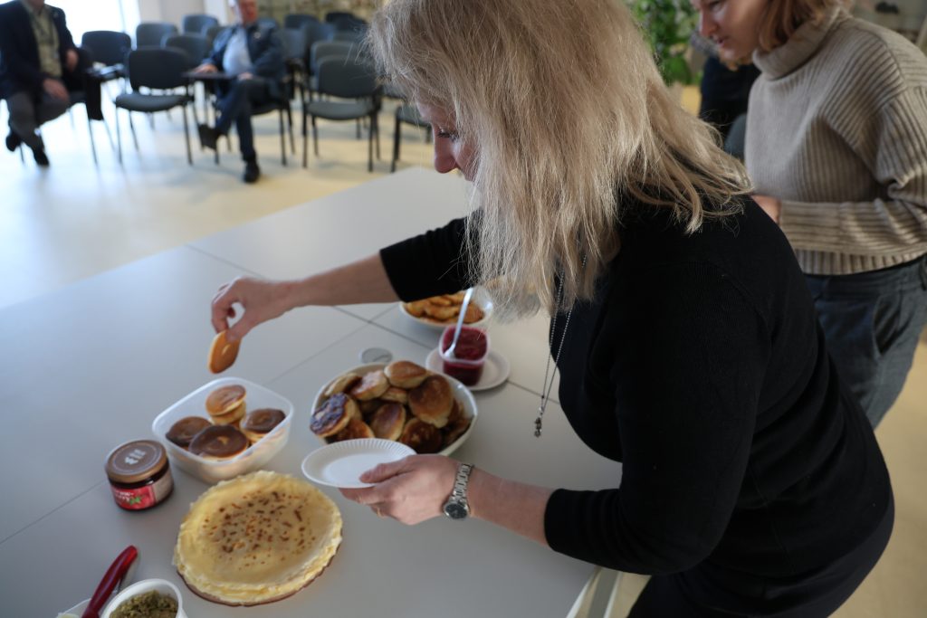 Konferencijų salėje susirinkę darbuotojai ragavo vieni kitų blynus, dalijosi receptais, gurkšnojo arbatą ir šiltai pabendravo. Šventinė atmosfera priminė, kad Užgavėnės – puiki proga ne tik ragauti, bet ir stiprinti bendruomeniškumą.