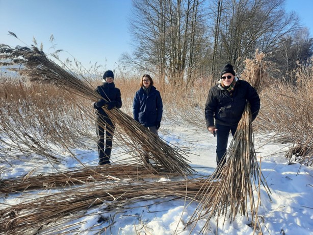 Cheminės ekologijos ir elgsenos laboratorijos Vabzdžių evoliucinės ekologijos grupės mokslininkai ruošiasi artėjančiam vasaros sezonui: pasinaudoję tvirta ledo danga, Kauno marių pakrantėje pjovė nendres būsimoms lizdavietėms-gaudyklėms.