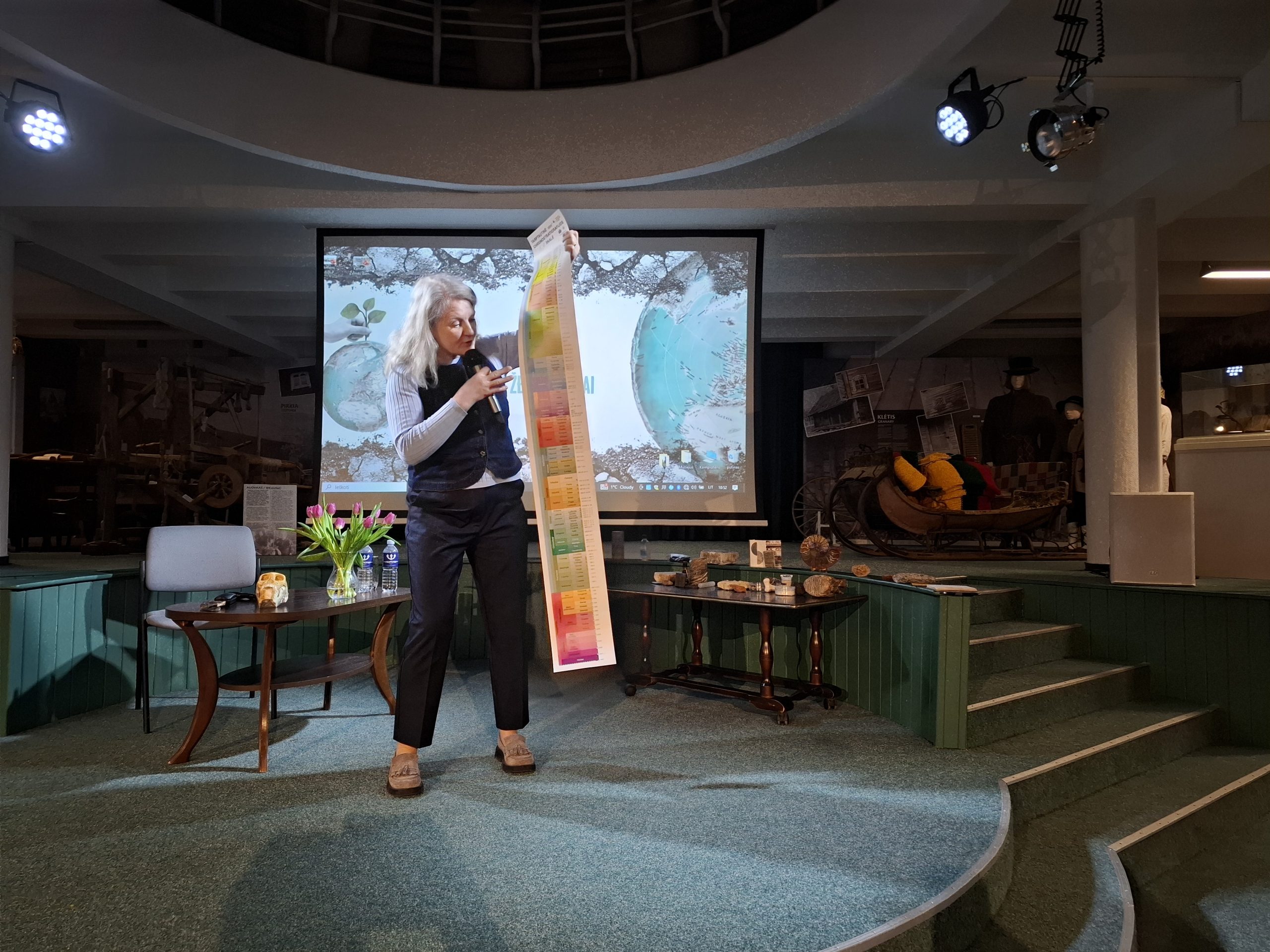 Paskaitą apie Lietuvos akmenis skaitė Gamtos tyrimų centro Klimato ir vandens tyrimų laboratorijos vyresnysis mokslo darbuotojas dr. Jonas Satkūnas, o iš arčiau susipažinti su Lietuvos mineralais ir fosilijomis pakvietė Mokslinių kolekcijų skyriaus vyriausioji specialistė Indrė Satkūnienė.